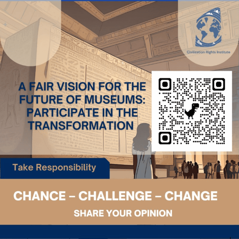To make this moment truly global, CRI has launched a worldwide survey to gather perspectives and insights that will shape Dr. Rashed’s address at ICOM 2025. Individuals, museums, universities, indigenous communities, and civic organizations are all invited to share their voices.